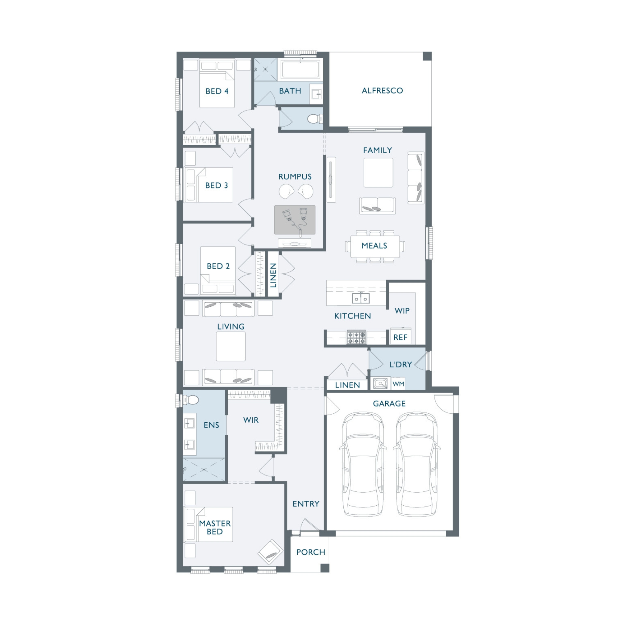 Vecchio forms the perfect foundation ideal for any growing family. Open plan living has been carefully paired with zoned areas capturing the perfect combination of seclusion and space. The impressive Master Suite has been positioned to the front of the home allowing for privacy, while the three secondary bedrooms ingeniously surround a kids retreat creating another private area for entertaining.